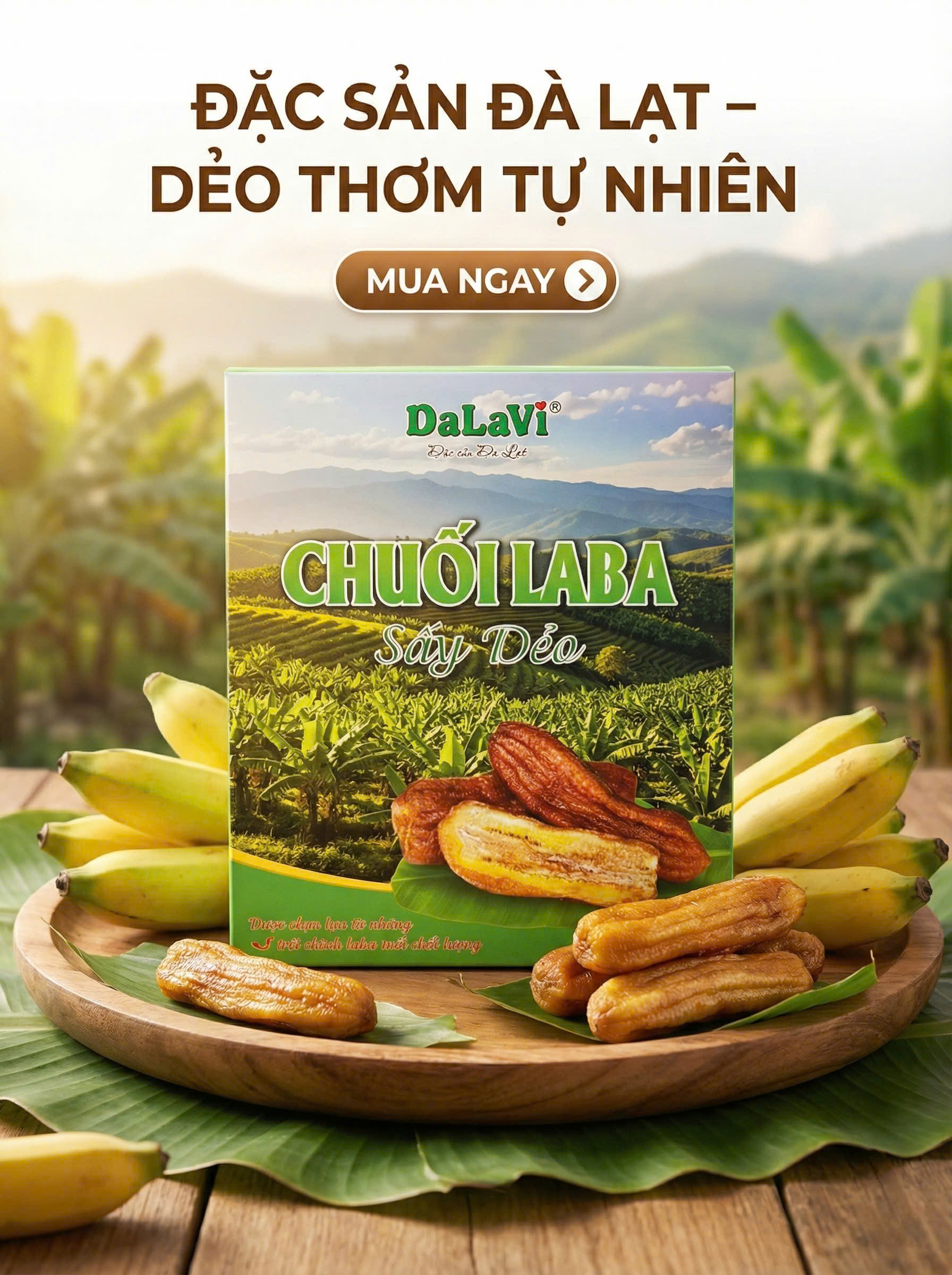 Với sự kết hợp hoàn hảo giữa nguồn nguyên liệu chuối Laba đặc sản, quy trình chọn lọc khắt khe và công nghệ sấy tiên tiến, sản phẩm chuối Laba sấy dẻo của DaLaVi không chỉ là món ăn vặt ngon miệng, mà còn là món quà sức khỏe từ thiên nhiên, xứng đáng để phân phối rộng rãi và lưu giữ như một niềm tự hào của Đà Lạt.