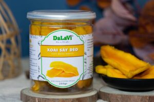 Một ưu điểm nổi bật của xoài sấy dẻo Lâm Đồng là độ an toàn và giá trị dinh dưỡng cao. Trong quy trình sản xuất của các thương hiệu uy tín như DaLaVi, xoài phần lớn được xử lý bằng công nghệ sấy lạnh, hạn chế sử dụng đường và không dùng chất bảo quản, giúp giữ lại phần vitamin A, C, chất xơ và các chất chống oxy hóa tự nhiên có trong trái xoài.